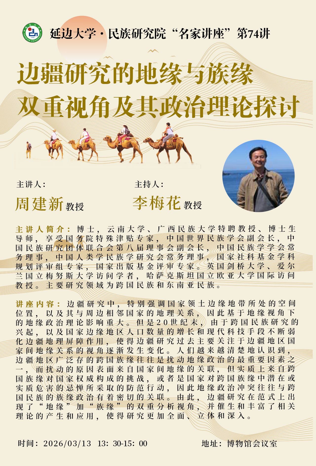 讲座题目:边疆研究的地缘与族缘双重视角及其政治理论探讨